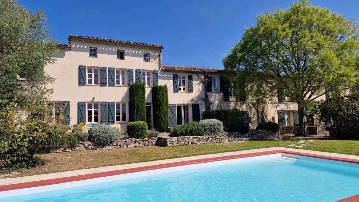 Corbières area Former 17th century wine estate, no neighbors, with main house, 3 other renovated houses, house to renovate, spa, swimming pool, wine cellars including 400m² convertible into a reception room, 36ha including 10ha of organic farmland, stream with water all year round, scrubland and woods, ideal for commercial activity with large receptions, weddings, retreats, brief events